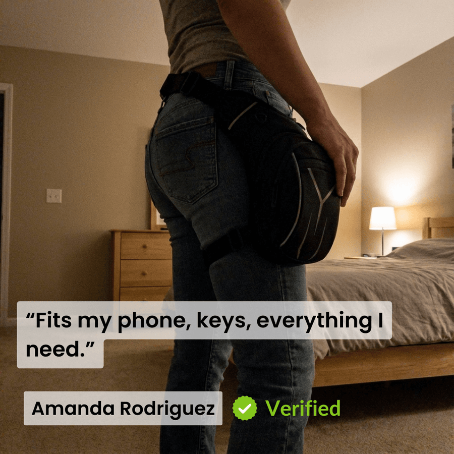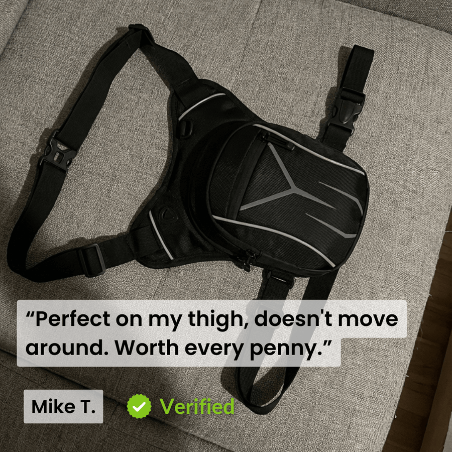 Absolutely. The dual-strap system (waist + thigh) locks the bag securely to your leg. It won't ride up, shift around, or interfere with your riding position.